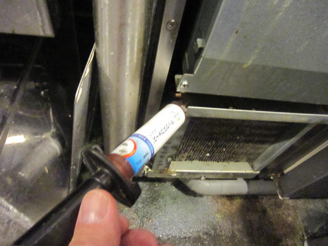 事前調査結果を基に、生息密度が多い箇所を中心に(冷蔵庫モーター部やドアのゴムの隙間、作業台の裏側縁の隙間他)ヒドラメチルノン含有ベイト剤(ジェル状食毒剤)を専用ベイトガンにてポイント塗布を入念に実施。パントリーとトイレ(可能ならば)も同様の処理を実施。客席については点検をメインに問題がある場合にテーブルの裏側等にベイト処理を実施。