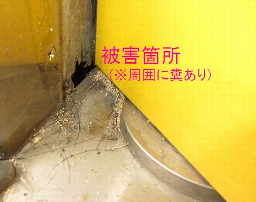 ◆場所:神奈川県内店舗1階及び天井裏◆状況:店内に糞落下による被害があったため当方に依頼があり、調査したところアメリカカンザイシロアリによる被害と判明。◆施工期間:2013年1月◆施工内容:清掃作業の上、今回調査して判明した被害箇所への「TCフォーマー」による発泡施工を実施(薬剤処理)。天井や店舗の壁面の被害箇所を施工するため、薬剤は当社で通常の白蟻駆除施工でも使用している安全性の高い普通物のものを使用した。
